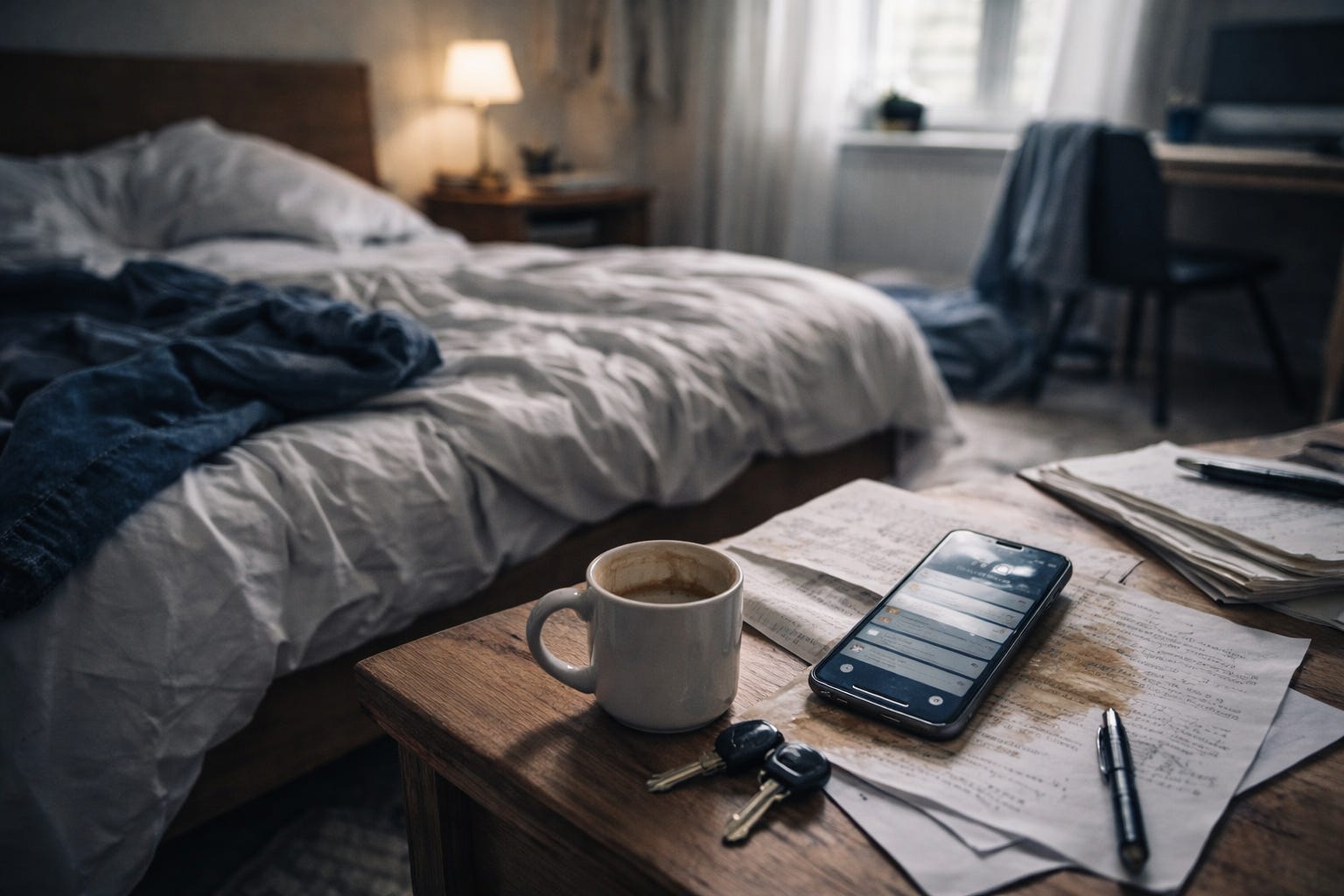 Volví a la habitación y, tras unos minutos de nervios buscando entre tanto desorden, aparecieron en el suelo, entre unos papeles desparramados y manchados por la taza de café del día anterior. Mi habitación, más que un caos por falta de orden, es a veces un ecosistema vivo. Me quedé bloqueado un instante. Reaccioné y salí disparado hacia el trabajo, sin la más ligera idea de lo que me esperaba.